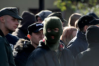Je čvrtek 16.10.08 a já se snažím překecat OndraKa aby se mnou jel do Janova, když už Jirka nemůže a libig taky ne. Samotnýmu se mi tam moc nechce ale nakonec v pátek kupuji lístek směr Litvínov, mezitím zkontaktuji kolegy z Mosteckýho deníku a poptám se na pár info. Sobota 06:15 a já celej rozespalej vyjíždím do Litvínova s baťohem plný foťáku a skel. Chci aspoň usnout když jsem se pořádně nevyspal-musel jsem pořád přemýšlet nad jakémsi "scénařem" celé akce, jaké to bude a jestli nedostanu do rypáku. V rychlíku žádné plešky nevidím a co víc mě překvapí že ani ve 12hodin co jsem čekal na spoj do Litvínova v Mostě žádné plešky taky nebyly -za to ale policajtů docela dost-. Čím dýl jsem sám a mimo "akci" ve mě roste nervozita, mezitím kontroluju fototechniku už asi po čvrtý ten den, přelepovaní izolepou foťák -nechci být moc na očích- (což se mi nakonec ukazalo jako rozumná věc). Je 13:35 a jsem konečně na hlavním nádraží v Litvínově -všude mrtvo- a na nebi visí vrtulník, takže jdu intuitivně směrem kde krouží vrtulník. Dostávám se na autobusový nádraží kde už vidím mostecký kolegy kteří stepují s ostatními novináři kousek od skupinky plešek kteří se posilňují u okýnka.